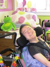 Tammy: Our resident’s days are not unlike yours and mine. They wake up and face the same activities and events we all do. School aged residents get ready for school in the morning. Eat breakfast, get dressed, and get primped and beautified… True, they need assistance with all these activities, but they help to the best of their abilities. Then it’s out the front door to their school bus. Our residents who are over age 21 get ready for their Day Training Program with the same morning activities. This program is adjacent to the Little Angels residence so they can just be pushed in their wheelchair directly to their program. At the end of the day they all come back home and have group activities, eat dinner, have quiet time to watch TV and listen to music and get ready for bed.